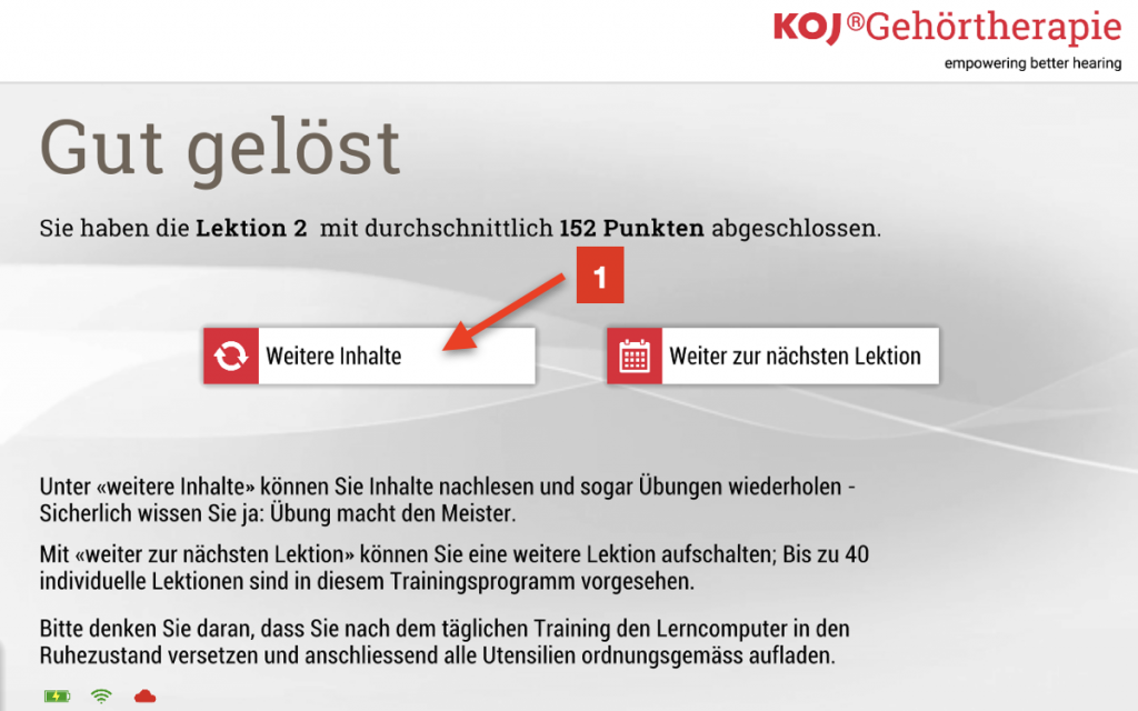 Der Patient hat am Ende einer Lektion die Möglichkeit zusätzliche Lernspiele auszuwählen.